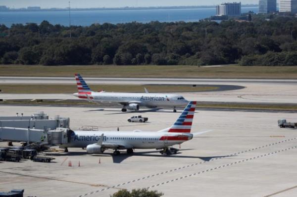 1月19日,在美国佛罗里达州坦帕市,美国航空公司的飞机停在坦帕国际机场,全国各地的机场都在等待威瑞森和AT&T推出5G技术。(图片来源:路透社OCTAVIO JonES)