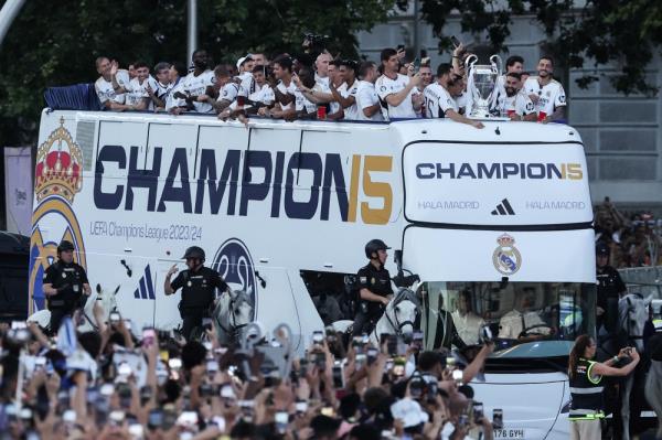 上周日,数千人走上街头欢迎这支球队。一天前,该队在温布利球场以2比0击败多特蒙德(Borussia Dortmund),赢得了创纪录的第15座欧冠冠军。