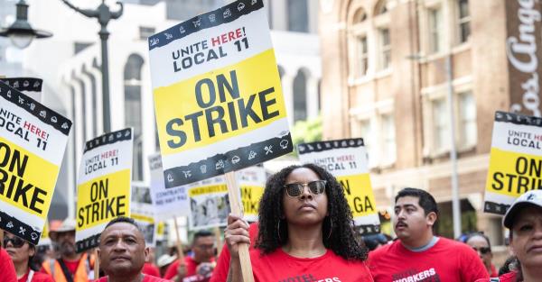 洛杉矶的酒店工会工人加大了争取更高工资和更好工作条件的力度,呼吁大型会议避开这座城市。