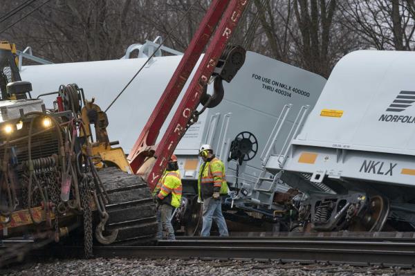 2月3日,大约50节火车车厢在俄亥俄州东巴勒斯坦脱轨,其中包括10节运载危险物品的列车。随后,其中5个烟囱将氯乙烯释放到空气中,随后工作人员将其点燃,以控制方式去除高度易燃的化学物质,产生了一缕黑色烟雾。