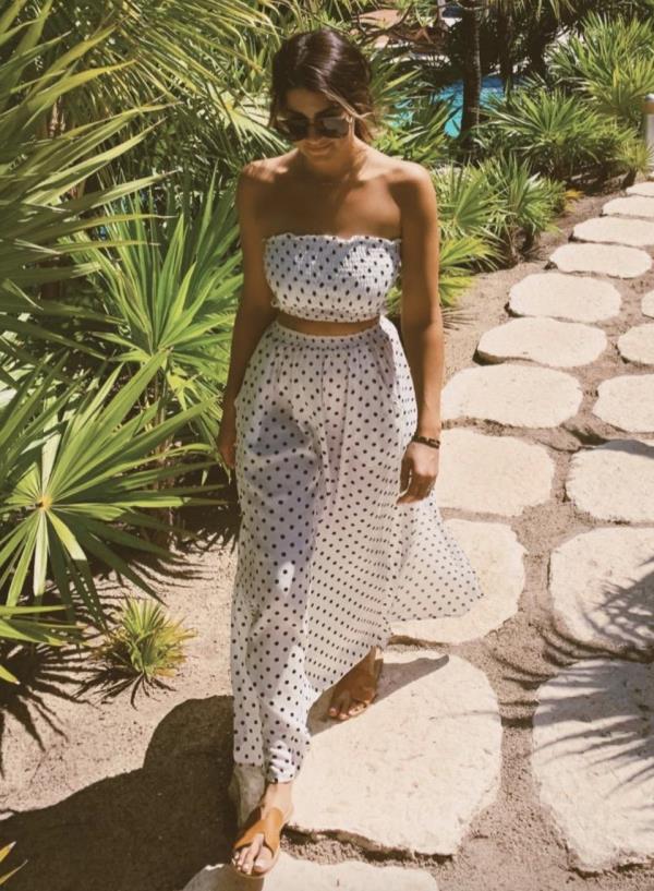 一件无肩带的碎花长裙,让人觉得它应该是一个全包的度假套餐。