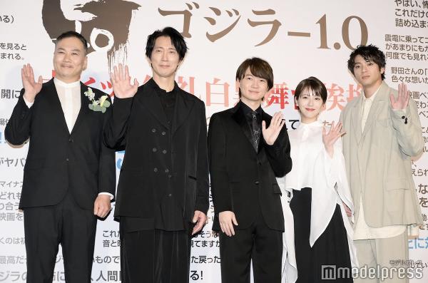 东京,1月13日(日本新闻)——周五,演员神木龙之介、滨部南和山田由纪与导演山崎隆通过视频连接,出席了在东京举行的一场特别的黑白舞台欢迎会,庆祝《哥斯拉减一》的巨大成功。