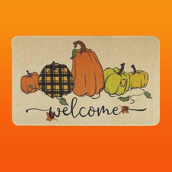 以秋天为灵感的门垫,上面有南瓜和欢快的欢迎信息,这个门垫已经为丰收节的开始做好了准备。它的尺寸是27.5英寸乘15.7英寸,所以你有足够的空间让你的家人把鞋子擦干净。此外,橡胶衬垫可以防止门垫滑落。亚马逊售价12.99美元