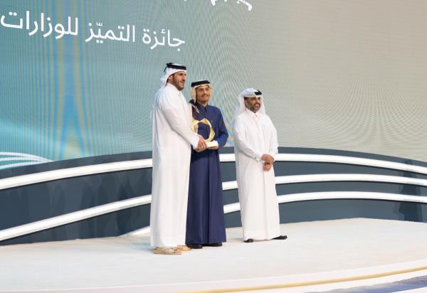 商业和工业部获得了部门优秀奖,工商部长谢赫穆罕默德·本·哈马德·本·卡西姆·阿勒萨尼接受了该奖项