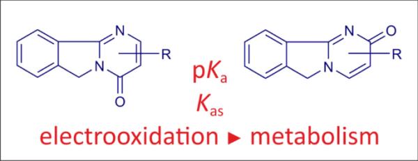 本文第一部分测定了弱有机碱6h -嘧啶[2,1-a]异吲哚的解离常数。解离常数的大小主要取决于酮基的位置和取代基的结构。在第二部分的工作中,测定了6h -嘧啶[2,1-a]-异吲哚与环糊精形成的化学计量比为1:1的配合物的缔合常数值。此外,在这种情况下,缔合常数的值受到特定化合物结构的影响。研究了6h -嘧啶[2,1-a]异吲哚在非水介质中阳极氧化的基本电化学参数。电化学氧化也被成功地用作I相生物转化的简单模型。由于6h -嘧啶[2,1-a]异吲哚尚未在体内进行检测,因此获得的结果为其可能的代谢命运提供了有益的线索。