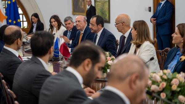 塞浦路斯方面还出席了财政部长Makis Keravnos,交通、通信和就业部长Alexis Vafeades,能源、商业和工业部长Giorgos Papanastasiou,欧洲事务副部长Marilena Raouna,总统副部长Irini Piki,文化副部长Vasiliki Kassianidou博士和一些高级官员。