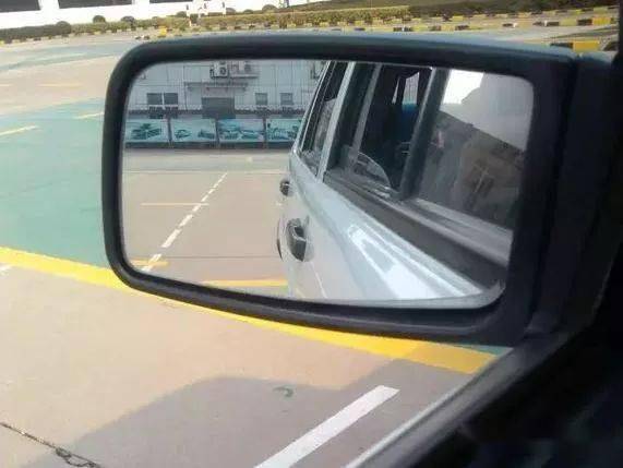 4. 学会看后视镜判断车身是否正。后视镜中,看车身与两侧的距离是否相等,如果相等,那么就是正的。如果不相等,那么就是歪的,需要调整。