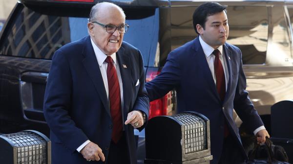 12月7日,美国前总统唐纳德·特朗普在纽约最高法院离开法庭休息后发表讲话。