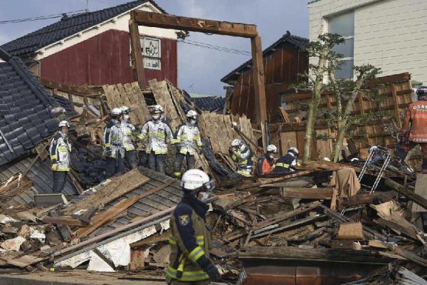 根据日本地震烈度衡量,周一的地震为7.6级。自地震发生以来,随着在倒塌或烧毁的建筑物下发现更多尸体,死亡人数一直在稳步上升。救援人员仍在努力寻找那些在雨天下落不明的人,预报称诺托半岛将出现降雪。至少222人仍下落不明。