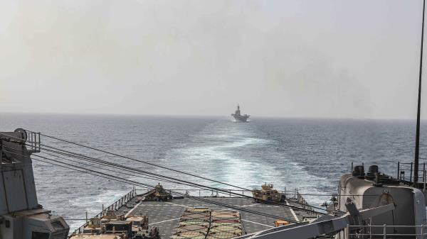 库珀说,自11月中旬以来,包括星期四在内,胡塞武装已经对途经南红海和亚丁湾的商船发动了25次袭击,“没有迹象表明他们不负责任的行为正在减弱”。