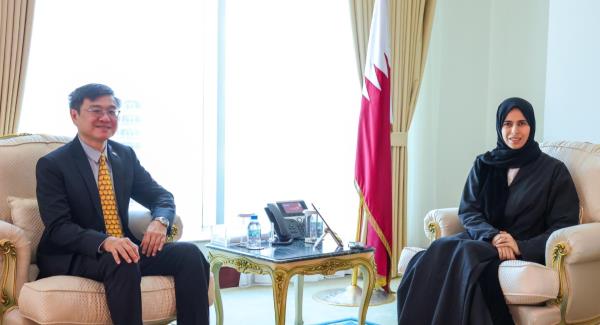 卡塔尔多哈:外交部国际合作国务大臣何洛华会见了新加坡共和国驻卡塔尔国大使何黄周明。