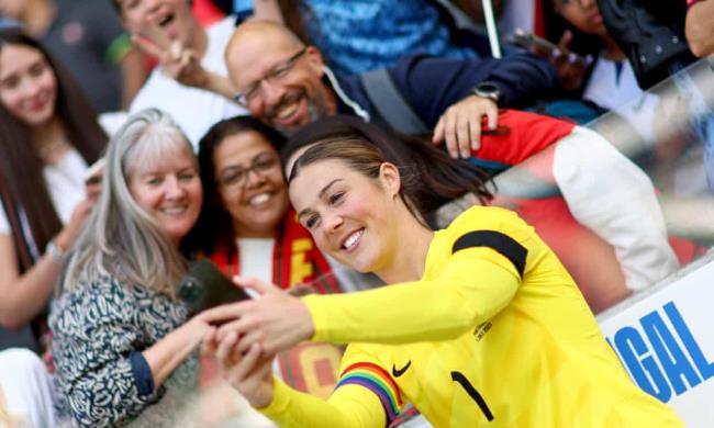 16岁的艾米·索马鲁(Emmy Somauroo)就是其中一名球迷,她想在与葡萄牙的热身赛上见到她的英雄。厄普斯在比赛结束后发现了她,并爬过栅栏拍了一张照片。