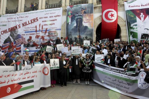 在北非,有着敏感殖民历史的法国是街头愤怒的特别目标。在突尼斯,位于首都中心的法国大使馆前举行了几场集会。示威者要求大使“离开”。喷在突尼斯法国学院外墙上的标语清楚地反映了法国的这种堕落形象:“一日为移民,终生为移民”,“法国,只有某些人享有权利的国家”。美国和德国也成为攻击目标。德国大使的言论——指的是“哈马斯对以色列发动的野蛮恐怖袭击引发了目前的冲突升级”——在突尼斯引发了强烈抗议。在拉巴特和阿尔及尔,支持巴勒斯坦人的示威游行团结一致,谴责西方在“加沙种族灭绝”中的“同谋”。
