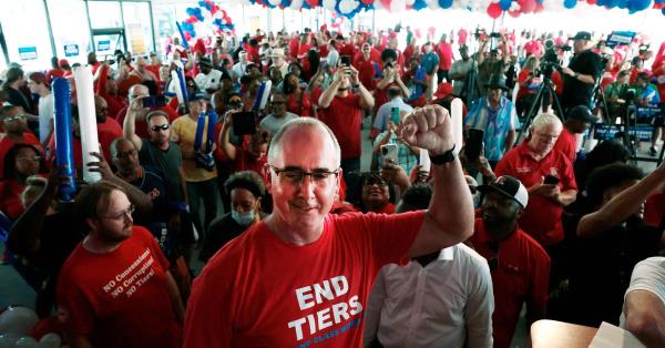 “过去10年是三巨头历史上最赚钱的时期,”他说。“他们没有把这些利润投资于我们,投资于创造这些利润的工人,而是把这些利润浪费在给富有的投资者和首席执行官们的礼物上。”