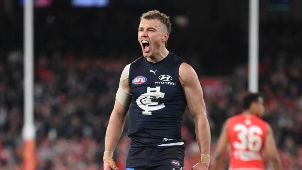 卡尔顿庆祝了他们十年来第一次参加AFL决赛,以紧张的6分战胜悉尼,保持了他们的英超梦想。