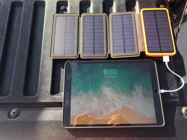 方便的电源为我们所有的露营和户外探险。太阳能充电器是完全充满电,并准备使用的权利,如果盒子。太阳能屏幕上的快速关闭使单元在没有在阳光下充电时保持美观和紧凑。它和我的智能手机一样大,厚度是它的两倍。我喜欢背面的内置手电筒功能。单元侧面易于阅读的灯让我确切地知道我的电池有多满。到目前为止,我还没有遇到任何问题,它已经为我的手机和我儿子的平板电脑充电