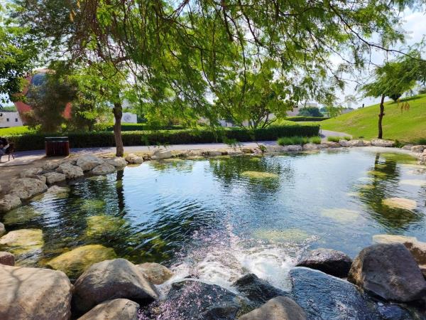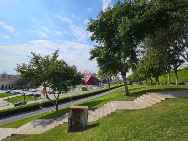 高耸的郁郁葱葱的绿色植物,精心照料的草地和许多树木是与朋友和家人建立联系的理想场所。这里还有慢跑道和一条“河”,这在卡塔尔很少见,很多人都被吸引来参观。