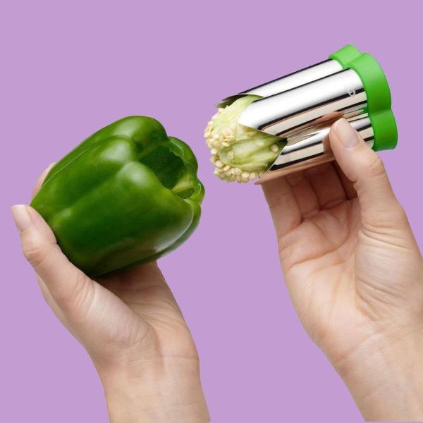 用一把小削皮刀切掉辣椒棘手的膜和核,这个工具一下子就把它全部去掉了。它与各种辣椒兼容,由不锈钢和不含bpa的塑料制成,可以安全地放在洗碗机的顶部架子上清洗。