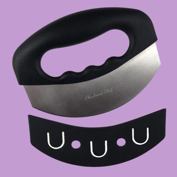 切菜摇椅刀:这把洗碗机安全的刀使用毫不费力的摇摆动作来切菜,而不是依赖于你的手指灵巧。它可以有效地切任何东西,从蔬菜到巧克力块,到肉类到草药。它是不锈钢的,有一个易于握握的手柄,并放在一个安全的护套里。