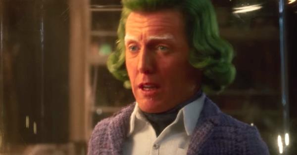 到目前为止,格兰特扮演的奥柏伦柏人只在《旺卡》预告片的结尾短暂出现过,他被困在一个玻璃罐子里。